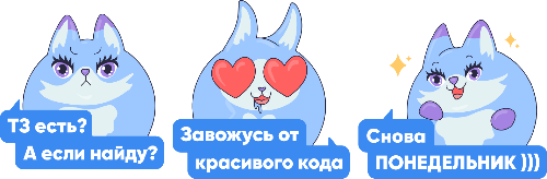 Казалось бы, как забавные картинки с подписями могут повлиять на общение между сотрудниками. Но, если у вас глубокая удаленка, а рабочие переписки происходят в Telegram, фирменные стикеры а) обеспечат вам приятную атмосферу, б) разрядят обстановку, в) подарят ощущение причастности к комьюнити компании.