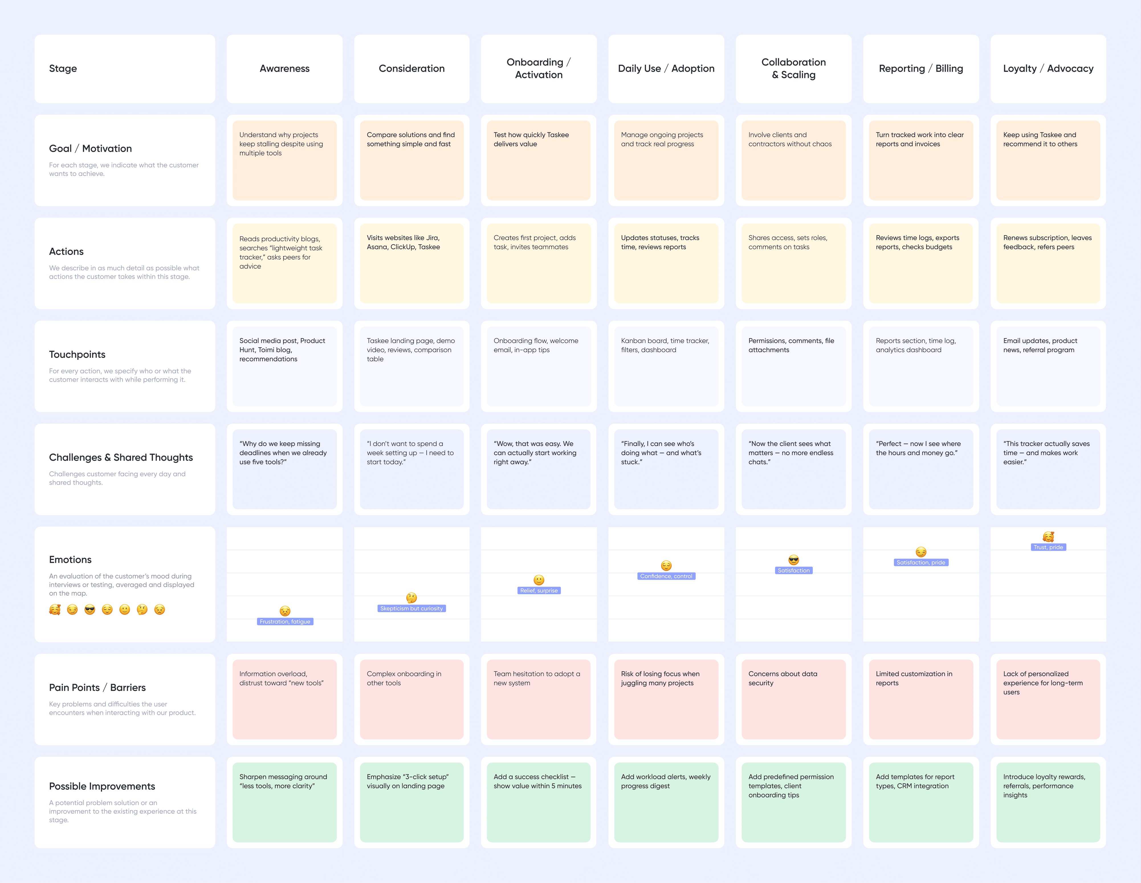 Существующие решения были либо перегружены, либо без структуры — это приводило к хаосу на досках и размытым процессам. Вместо того чтобы упрощать работу, они становились еще одним слоем управления, где терялась прозрачность и реальный прогресс.