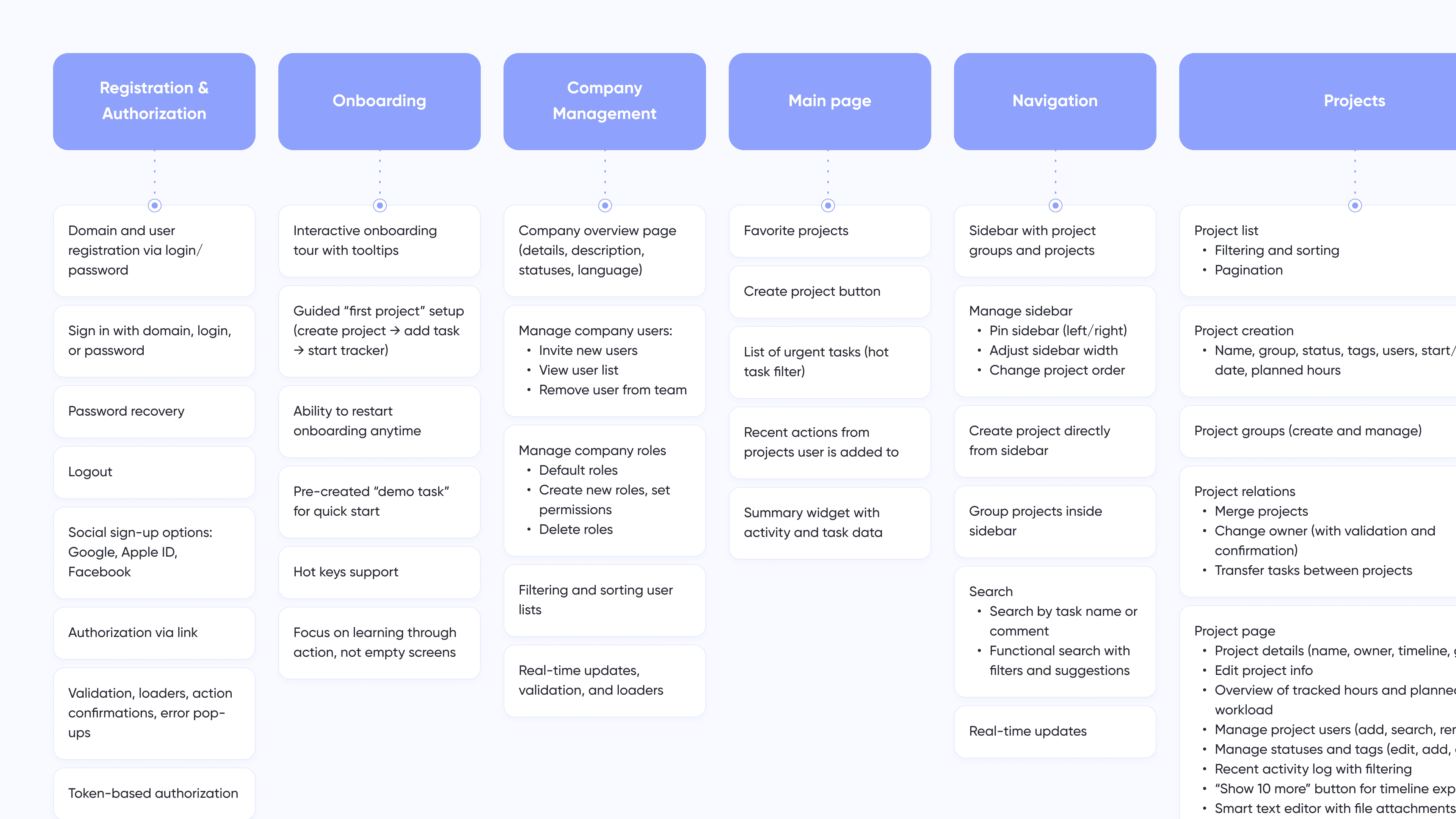 Его структура построена на логике чистого UX, настройках доступа и прозрачности для всей команды — принципах, которые мы применяем в проектах разработки B2B-порталов, где роли, уровни доступа и совместная работа критически важны.