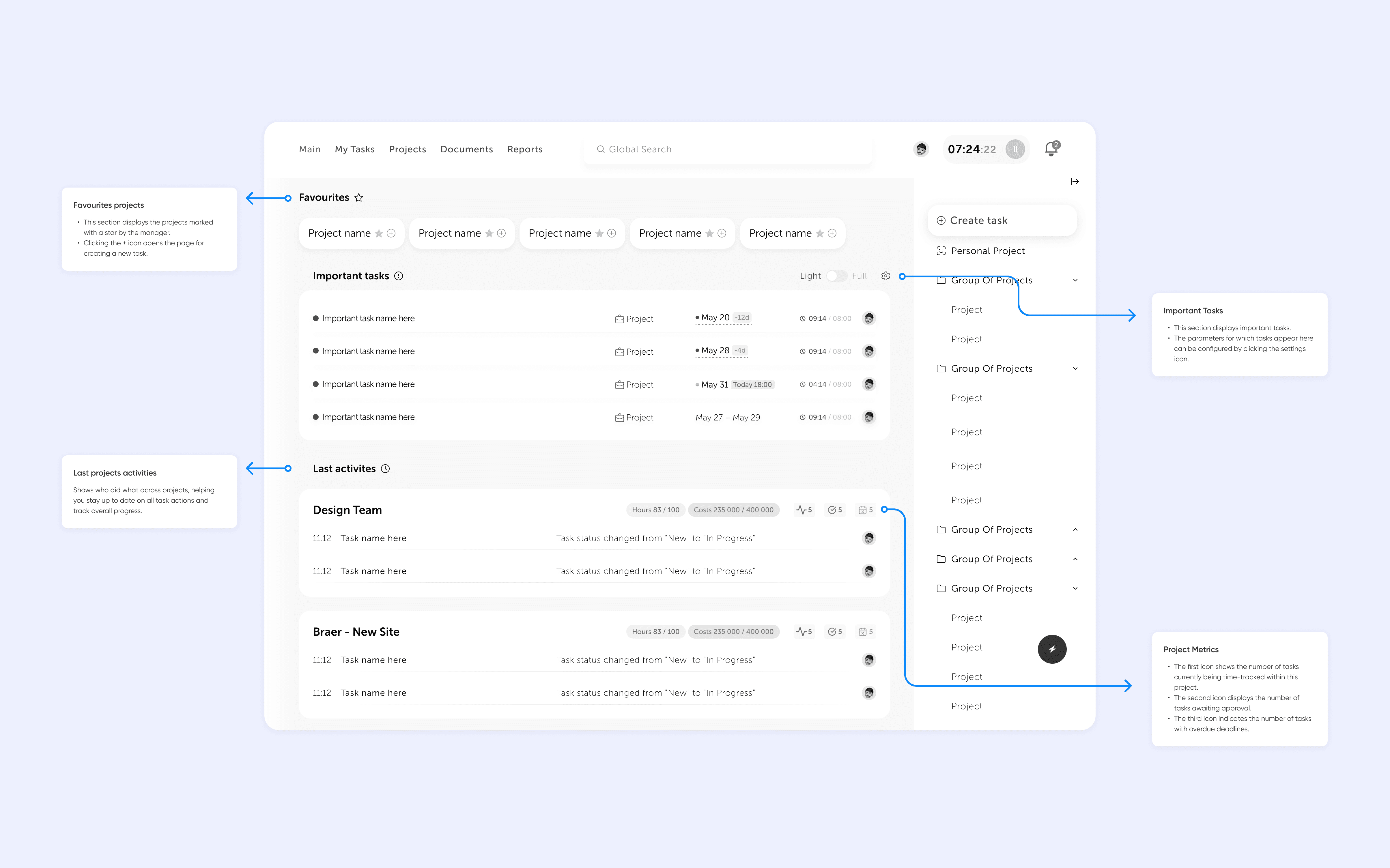 Taskee помогает командам легко вести несколько проектов — от простых задач до дедлайнов и отчетов. Понятный интерфейс и структурированные данные делают ежедневную работу прозрачной, организованной и эффективной.